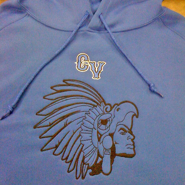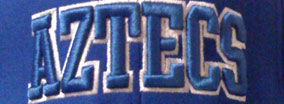 Puff 3D embroidery uses a foam underlining to achieve an extreme three dimensional effect.