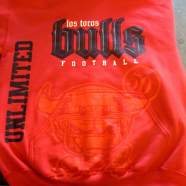Appliqué, also know as tackle twill, is the technique of layering fabric onto a garment